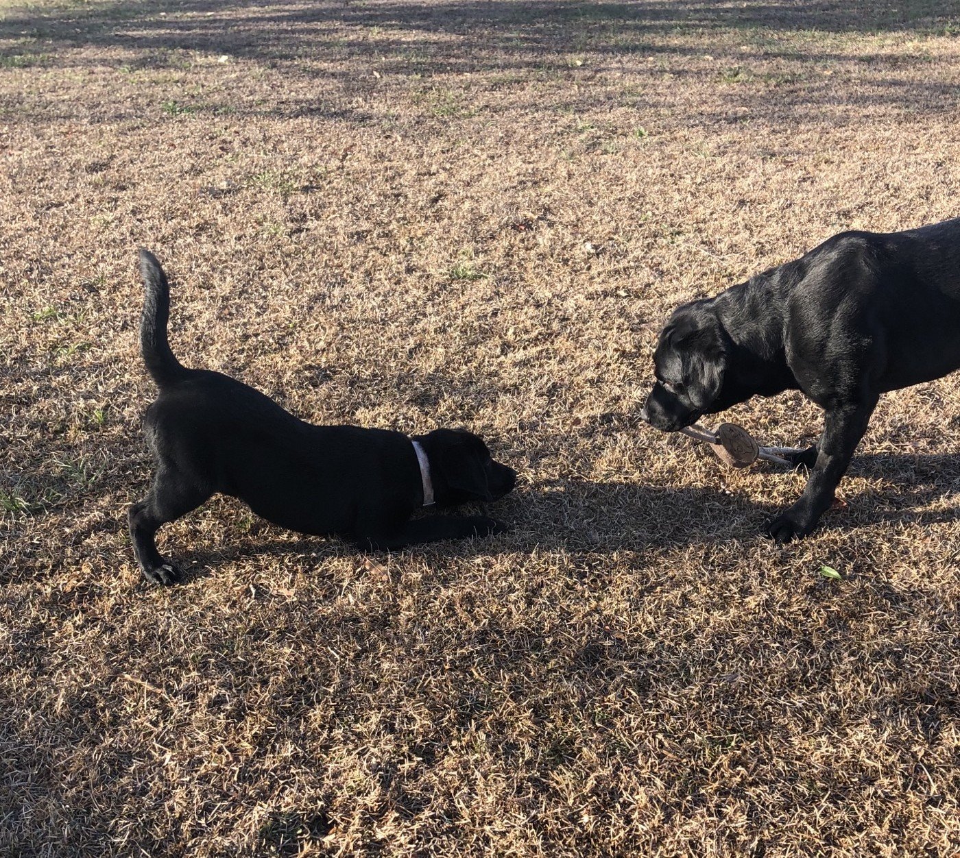 Teaching puppies not to pester older dogs